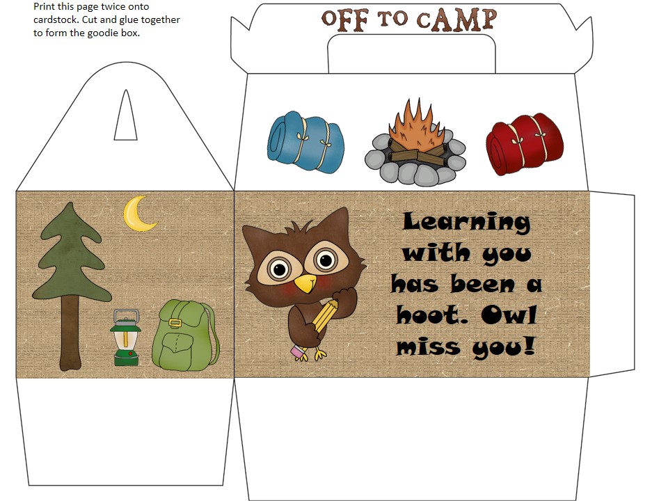 The second grade teacher and I are throwing a pajama reading party in our classrooms. When I got home from school I thought about how fun it would be to turn my classroom into an indoor campsite. So I got some ideas from pinterest and came up with a last day of school freebie.